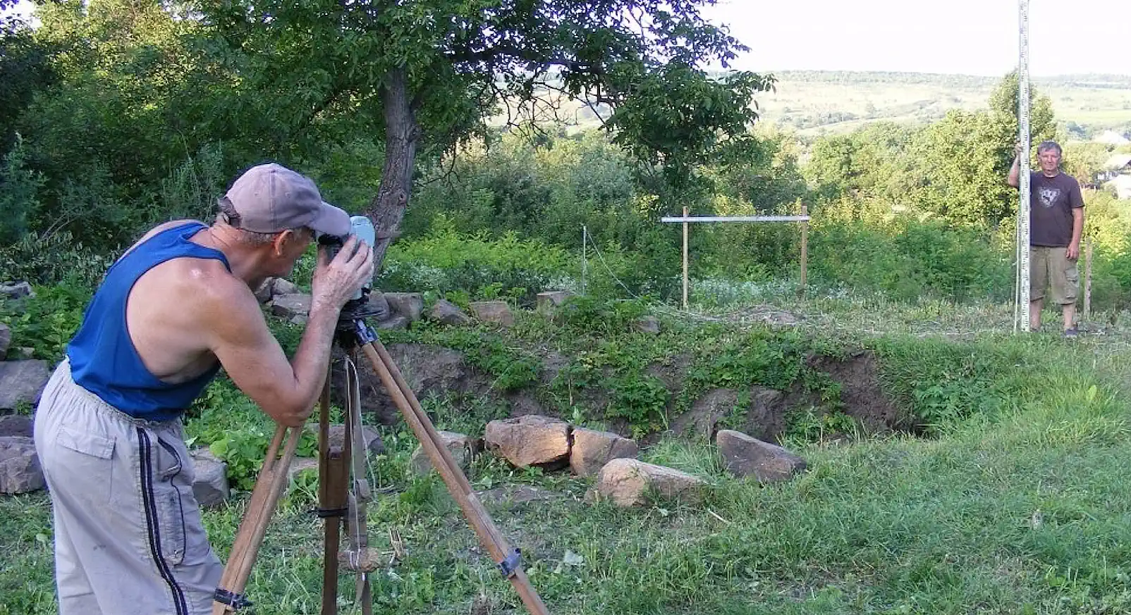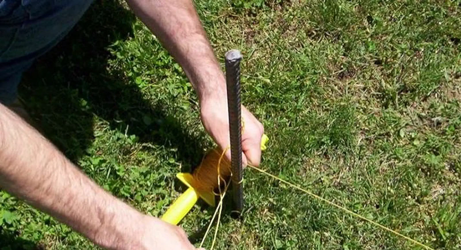 Для начала проводится разметка участка. Определяются угловые реперные точки, для установки стартовых столбов.