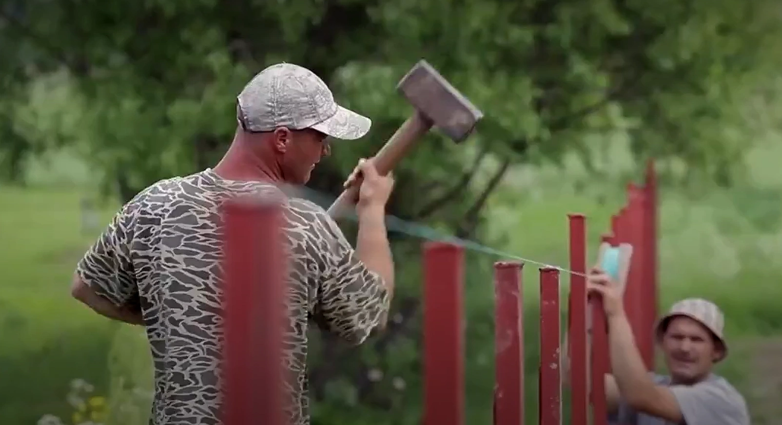 Углубление столба производится по уровню с помощью кувалды с использованием специальной проставки, защищающей металл от заминания.